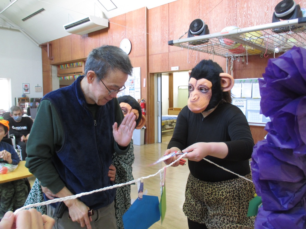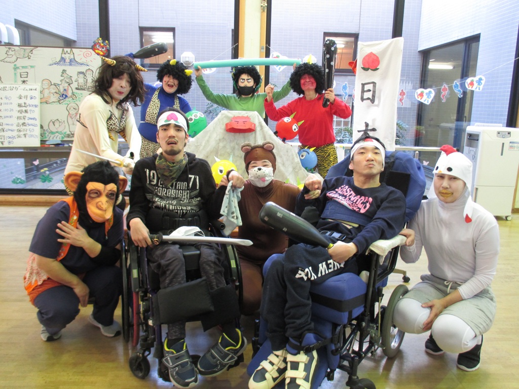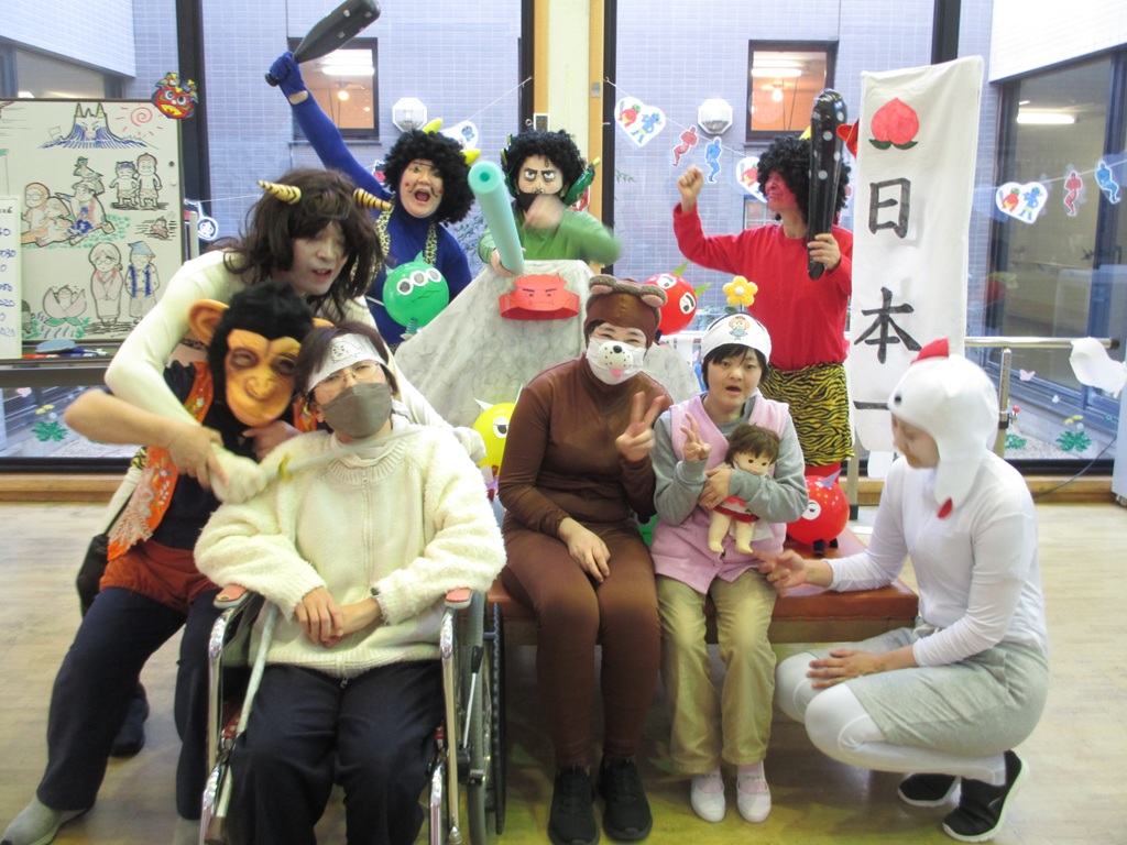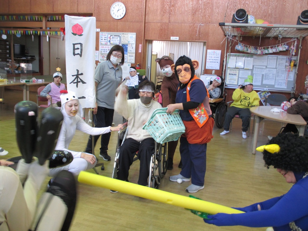 さて、今回の行事は、ご利用者様に桃太郎に扮していただき、鬼ヶ島へ鬼退治だゲーム!!