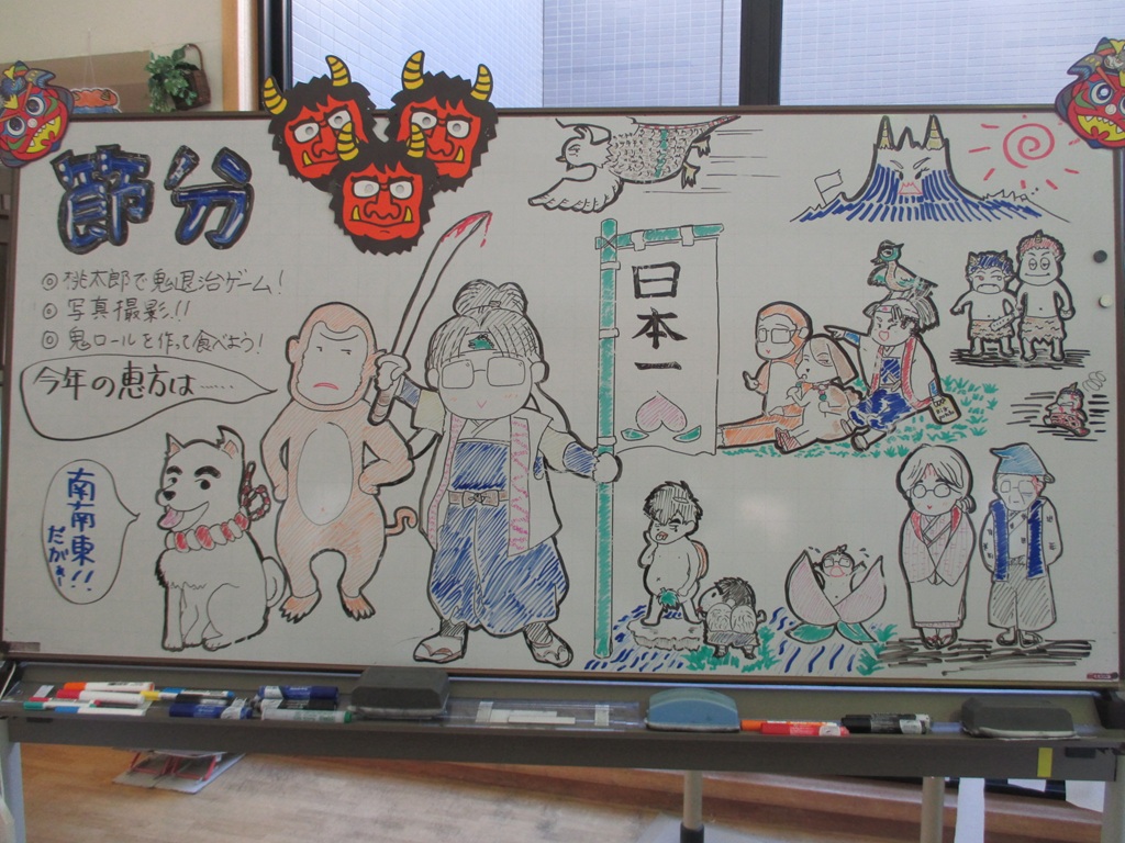 デイでは、節分行事を行いましたので、その様子をご紹介したいと思います(=゚ω゚)ノ