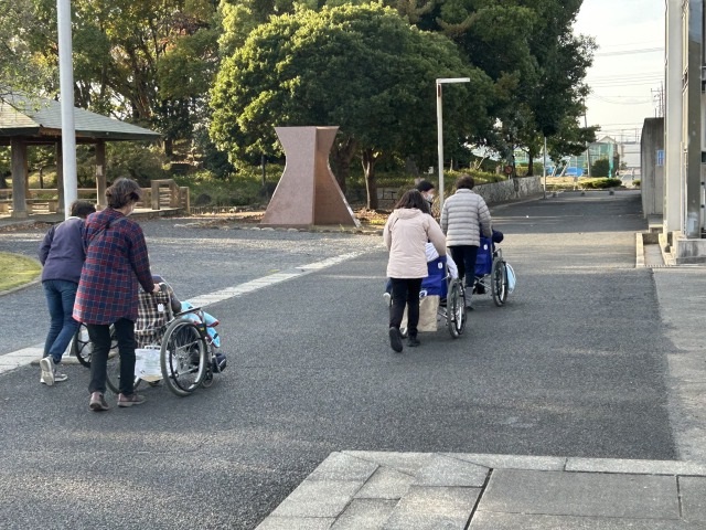 ボランティアさんの支援をいただき、いずみの杜までお散歩をしました